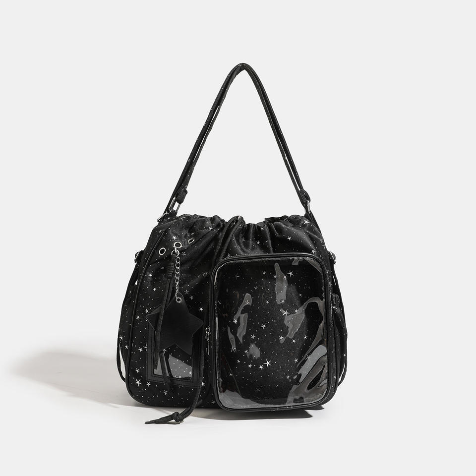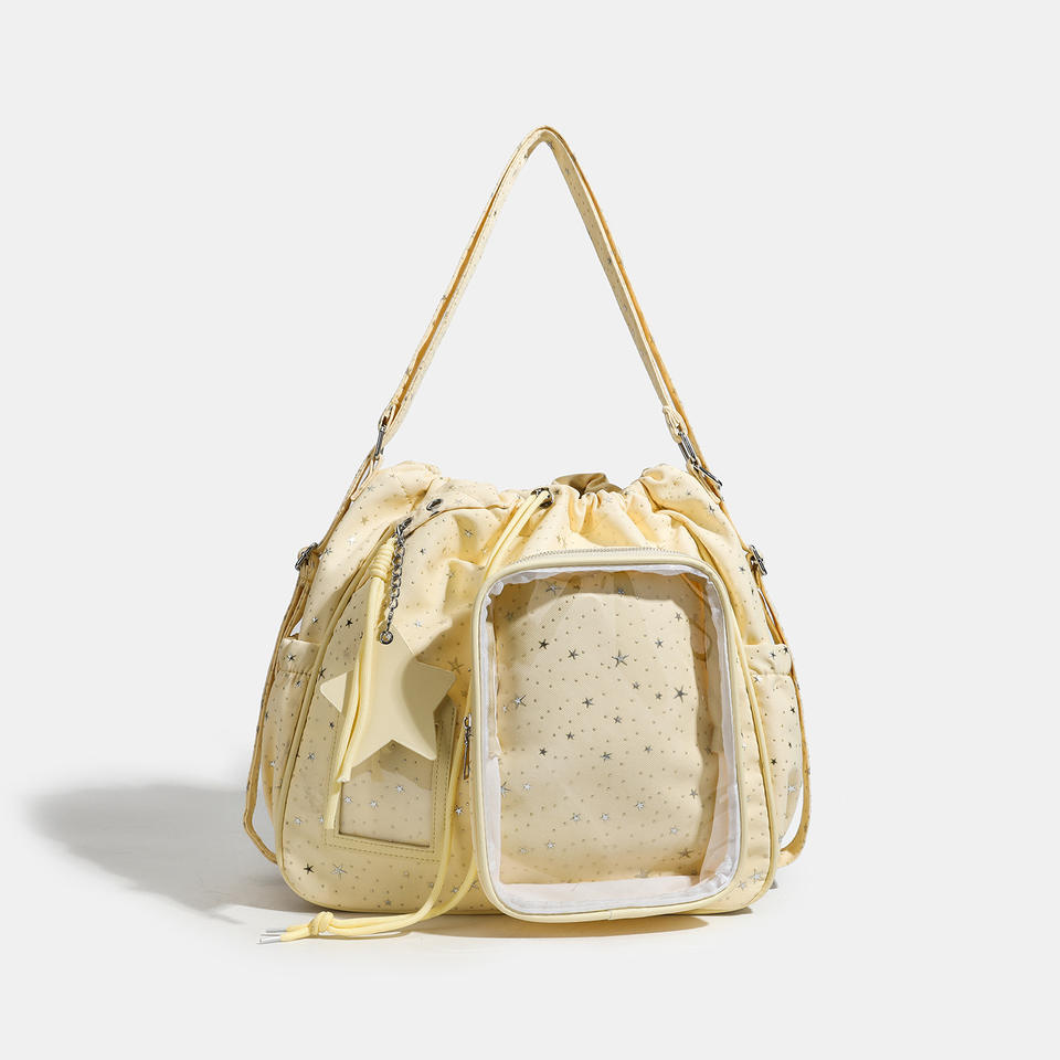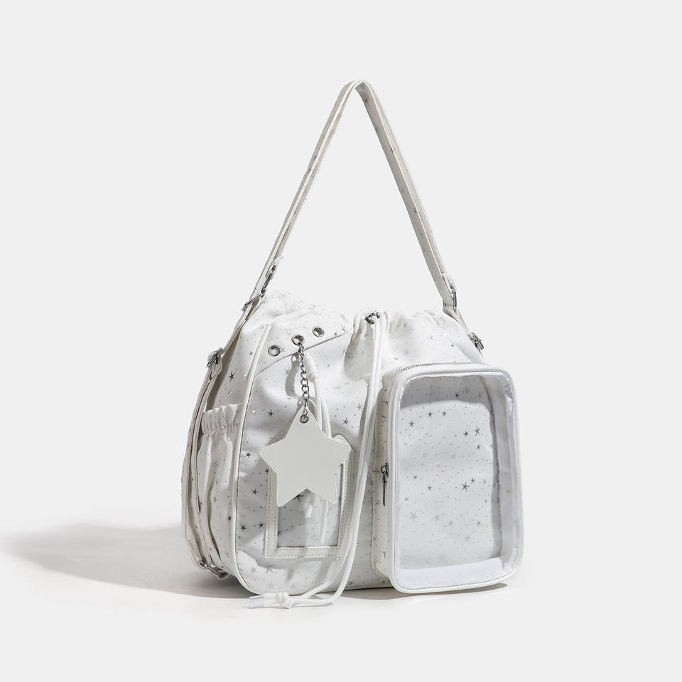 กระเป๋า GZZEST รุ่นสปริง 2026 ขนาด 20 ซม. น้ำหนักเบาพิเศษ ความจุเยอะ แบบเกาหลี ลายดาวห้าแฉก ผ้าไนลอน ซิปทรงเรขาคณิต สายสะพายสองเส้น