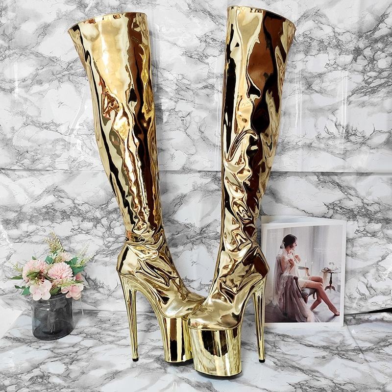 รองเท้าบูทเหนือเข่า20ซม. สำหรับผู้หญิง, รองเท้าเต้นรูดเสาหญิงรองเท้าบูทกริชแบบมีซิปบูทเหนือเข่า