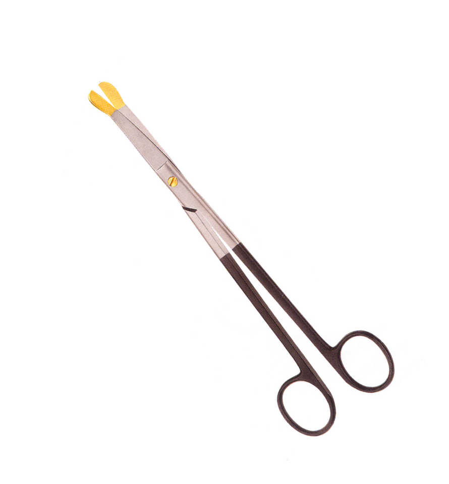 กรรไกรผ่าตัดทางทันตกรรมสแตนเลสปลายทองคำ Solz ขนาด 20 ซม. คมกริบ โค้งงอ ด้ามจับแบบเฉียง ตัดได้อย่างแม่นยำ ใช้งานด้วยมือ นำกลับมาใช้ใหม่ได้