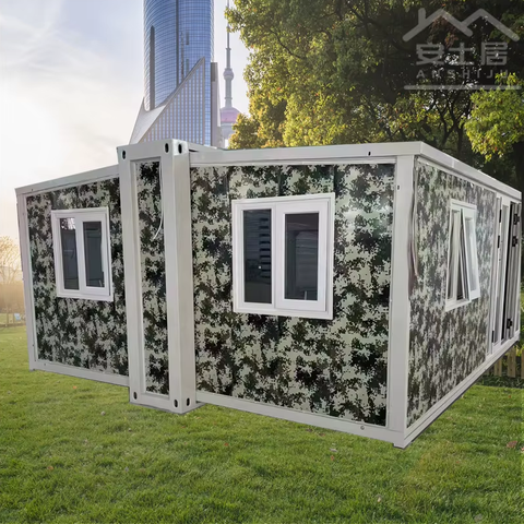 บ้านภาชนะเหล็กสำเร็จรูปแบบพับได้20FT 40Ft ขนาดเล็ก2 3 4 5 6ห้องนอนหรูหราพับได้