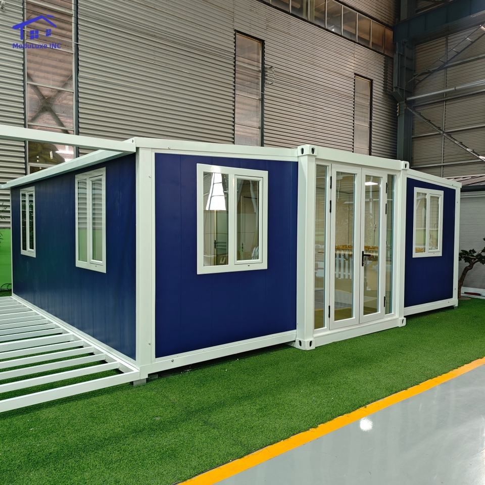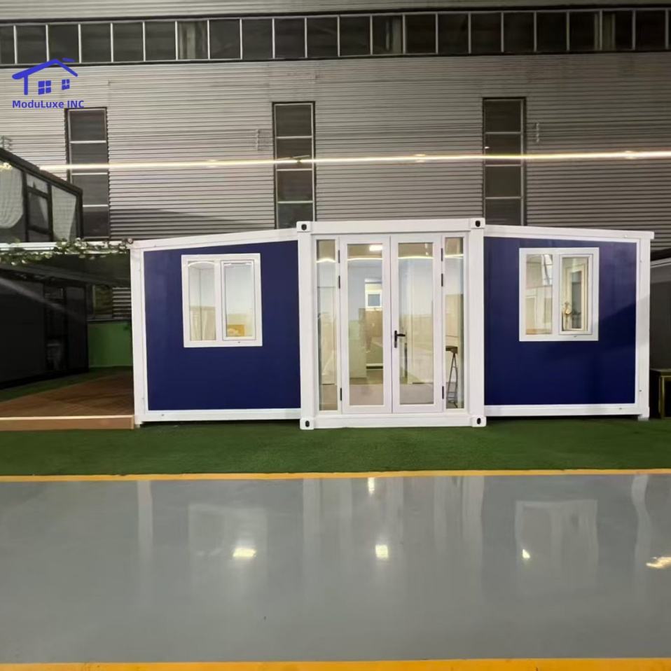 บ้านคอนเทนเนอร์สำเร็จรูปพับได้ ขยายได้ ขนาด 20 ฟุต 40 ฟุต 2 ห้องนอน ใช้เป็นร้านกาแฟ บ้านแคปซูล วิลล่า สำหรับใช้งานกลางแจ้ง