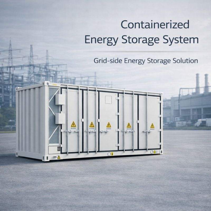 ระบบกักเก็บพลังงานแบบคอนเทนเนอร์ขนาด 20 ฟุต 5 เมกะวัตต์ชั่วโมง ใช้แบตเตอรี่ลิเธียมไอออนฟอสเฟต (LiFePO4) ระบายความร้อนด้วยอากาศ เชื่อมต่อกับระบบไฟฟ้า (Grid-Tied) และแบบออฟกริด (Off-Grid) พร้อมระบบควบคุมพลังงาน (EMS)