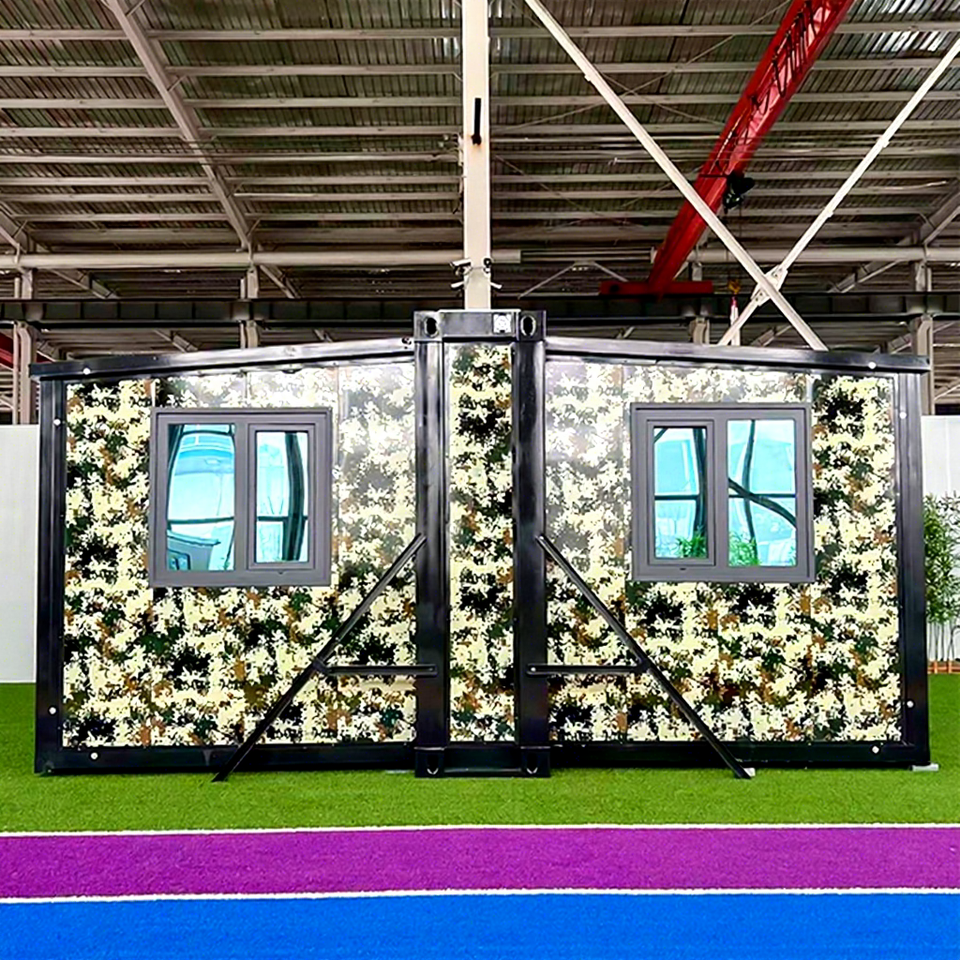 บ้านสำเร็จรูปขนาดเล็ก 20 ฟุต ดีไซน์ทันสมัย แบบโมดูลาร์ ผลิตจากเหล็ก แพ็คแบบแบน พร้อมแผงไม้แซนวิช สำหรับอาคารสำนักงานกลางแจ้ง