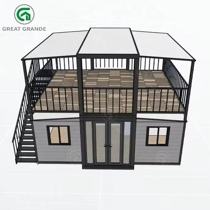 บ้านคอนเทนเนอร์แบบขยายได้สองชั้นขนาด 20 ฟุต สำหรับธุรกิจ ร้านอาหาร ร้านค้า สำนักงาน หรือร้านขายอาหารริมทาง