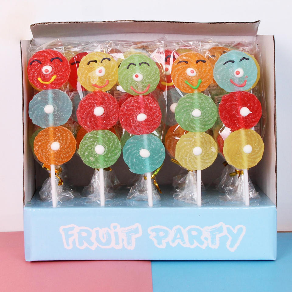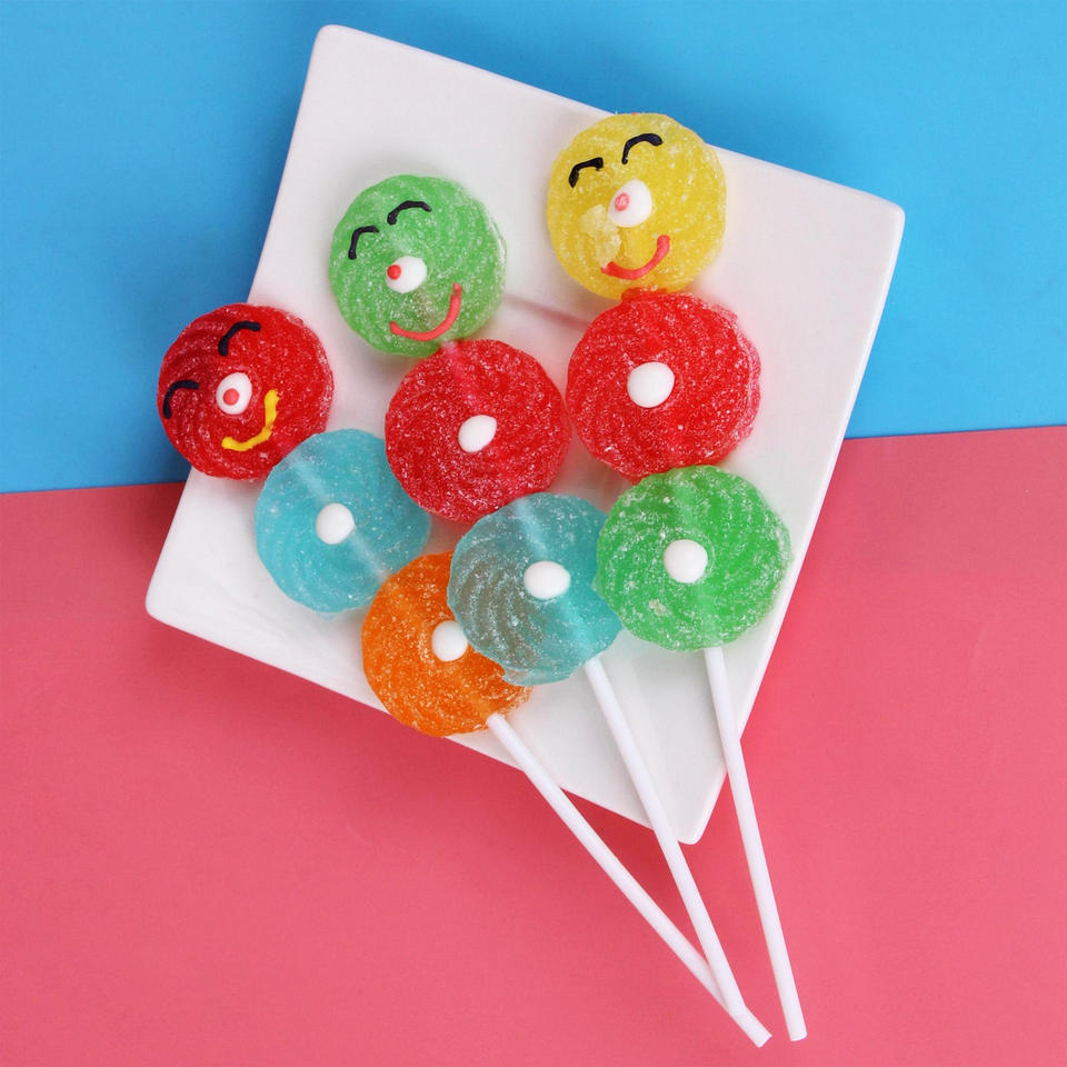 ลูกอมแท่งรูปหน้ายิ้ม 20 กรัม รสผลไม้รวมหลากสี ลูกอมนิ่มแบบเสียบไม้