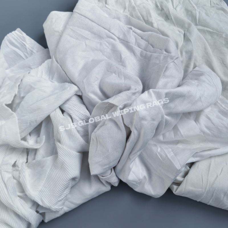 ผ้าเช็ดทำความสะอาดสีขาว บรรจุถุง 20 กก. ผ้าฝ้าย 100% ผ้าเช็ดทำความสะอาดจากเสื้อยืดสีขาว ผ้าฝ้ายเหลือใช้สำหรับงานในโรงงาน