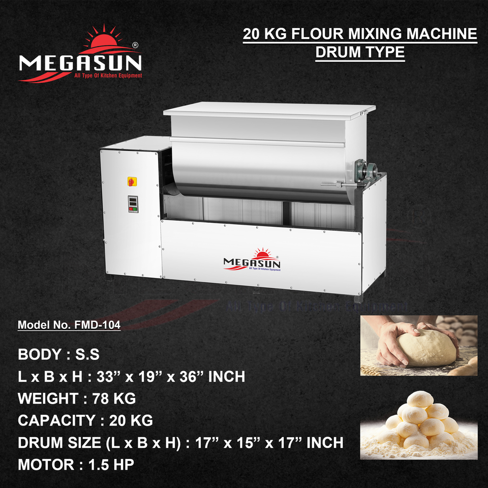 เครื่องนวดแป้งสแตนเลสสำหรับการค้าขนาด20กก. เครื่องผสมแป้งแบบดรัมน้ำหนัก1.5HP 78กก.