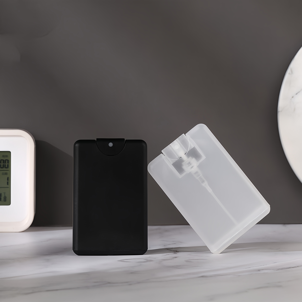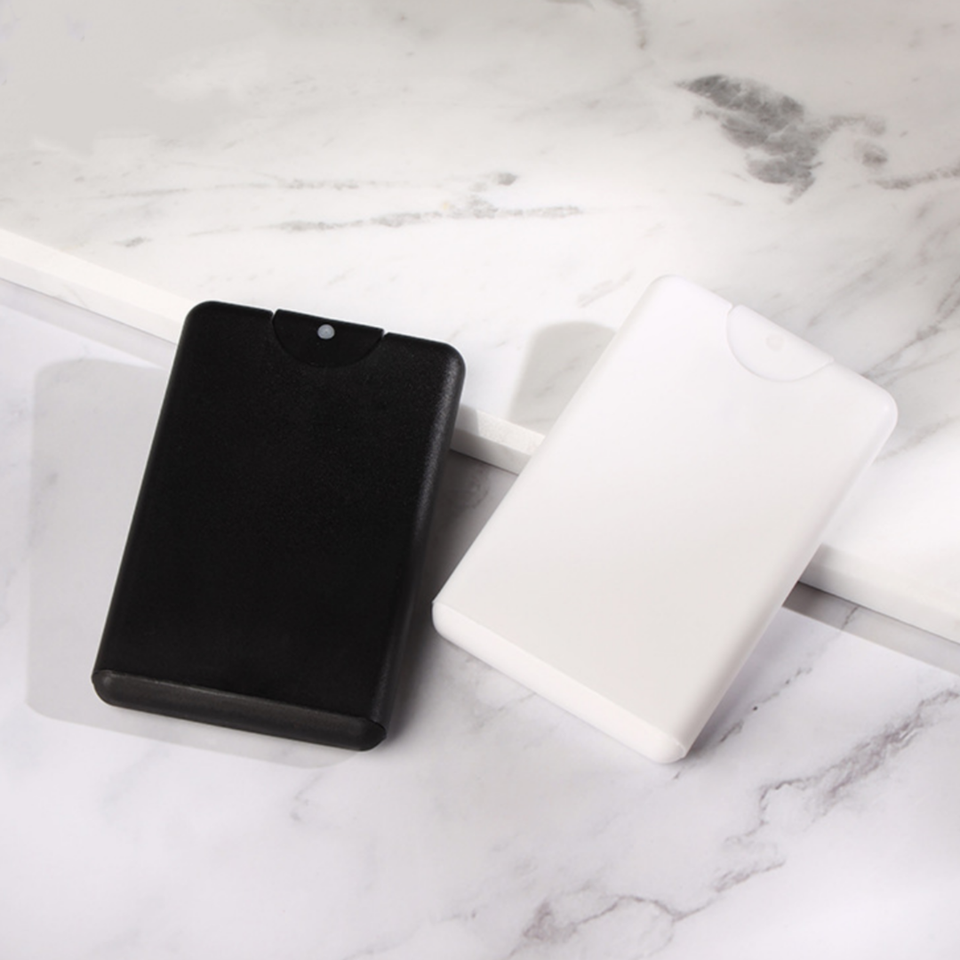 ขวดน้ำหอมฆ่าเชื้อแบบพกพาขนาด20มล. ขวดพลาสติกใส่แอลกอฮอล์บัตรเครดิตสเปรย์สบู่เหลวสำหรับใช้