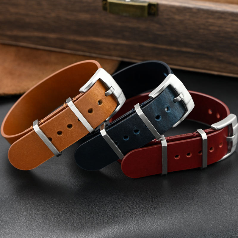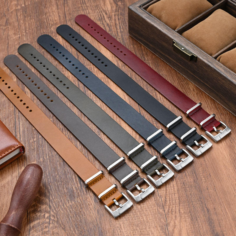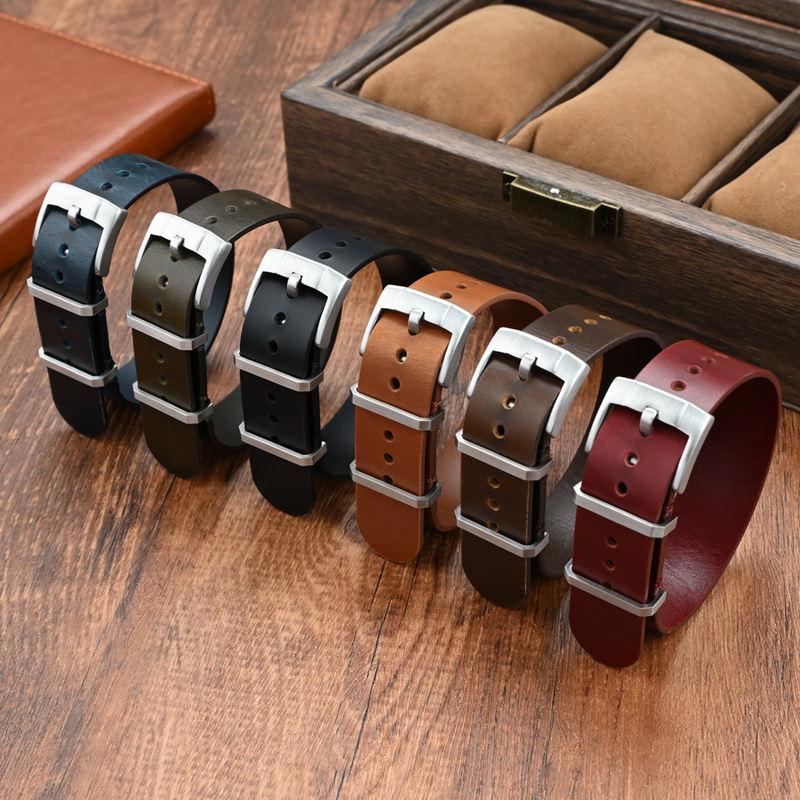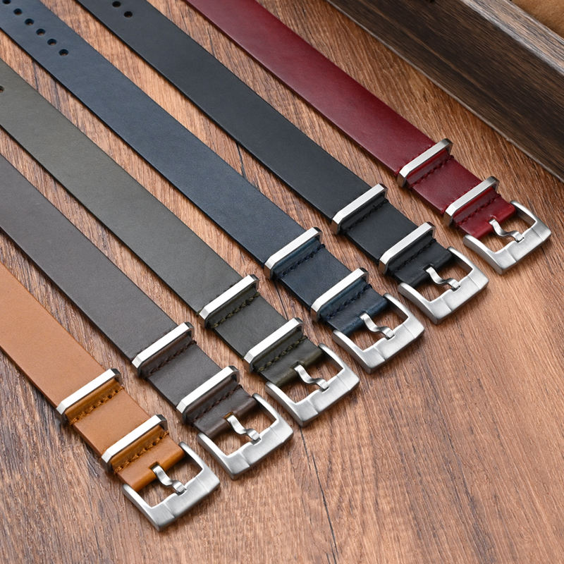 สายนาฬิกาหนังแท้แบบชิ้นเดียวขนาด 20 มม. 22 มม. ผลิตจากหนังเคลือบน้ำมัน พร้อมหัวเข็มขัดสแตนเลสขัดเงา