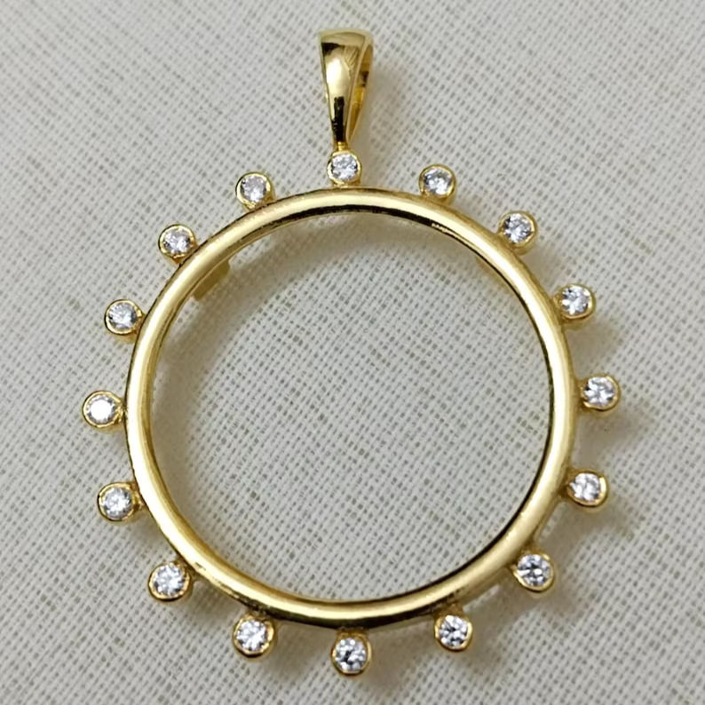 ชุดจี้แบบกรอบเปิด20มม. 925สเตอร์ลิงทองเวอร์เมลตัวเชื่อมเหรียญวินเทจเครื่องประดับการค้นพบส่วนประกอบ