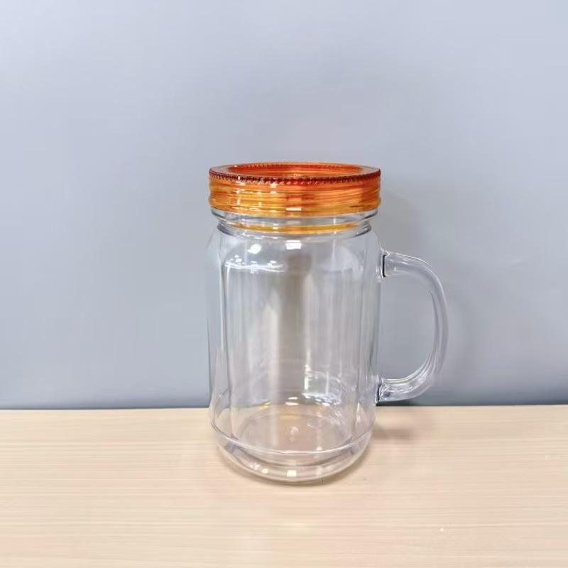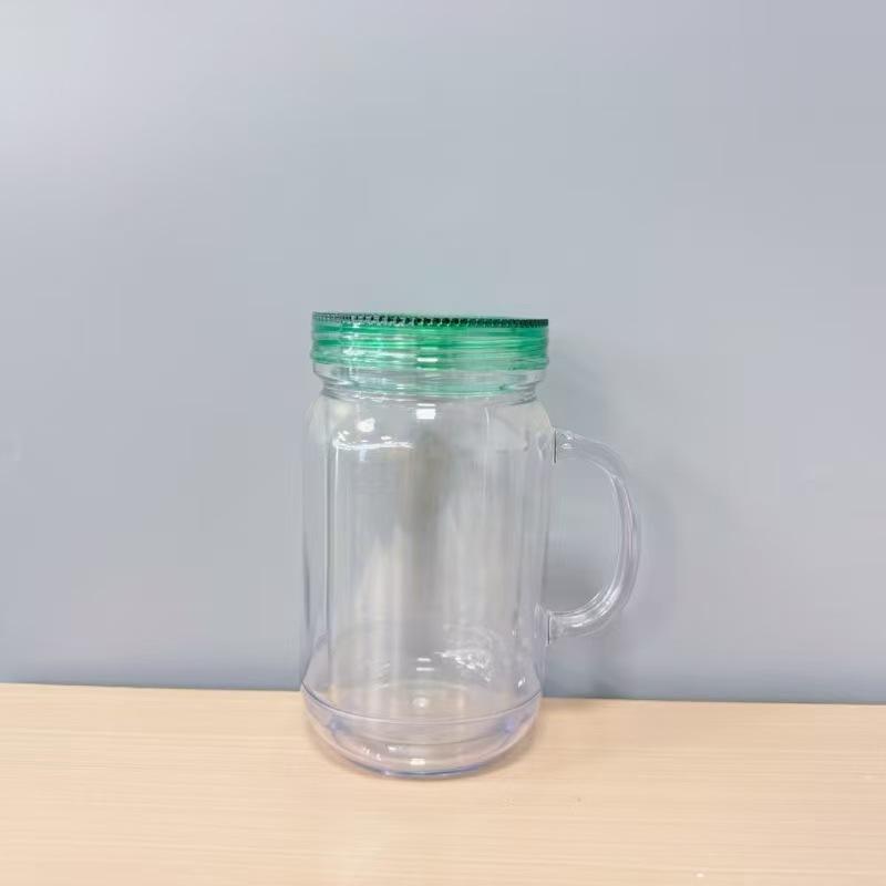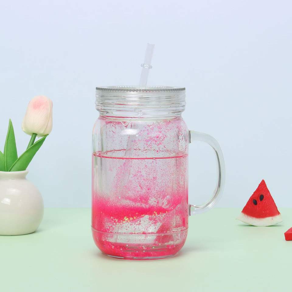 แก้วพลาสติกอะคริลิกผนังสองชั้นขนาด20ออนซ์ถ้วยแก้วใสทรงลูกโลกหิมะกลิตเตอร์แก้วขนาด20ออนซ์ด้ามจับปราศจากสาร BPA เป็นมิตรต่อสิ่งแวดล้อม