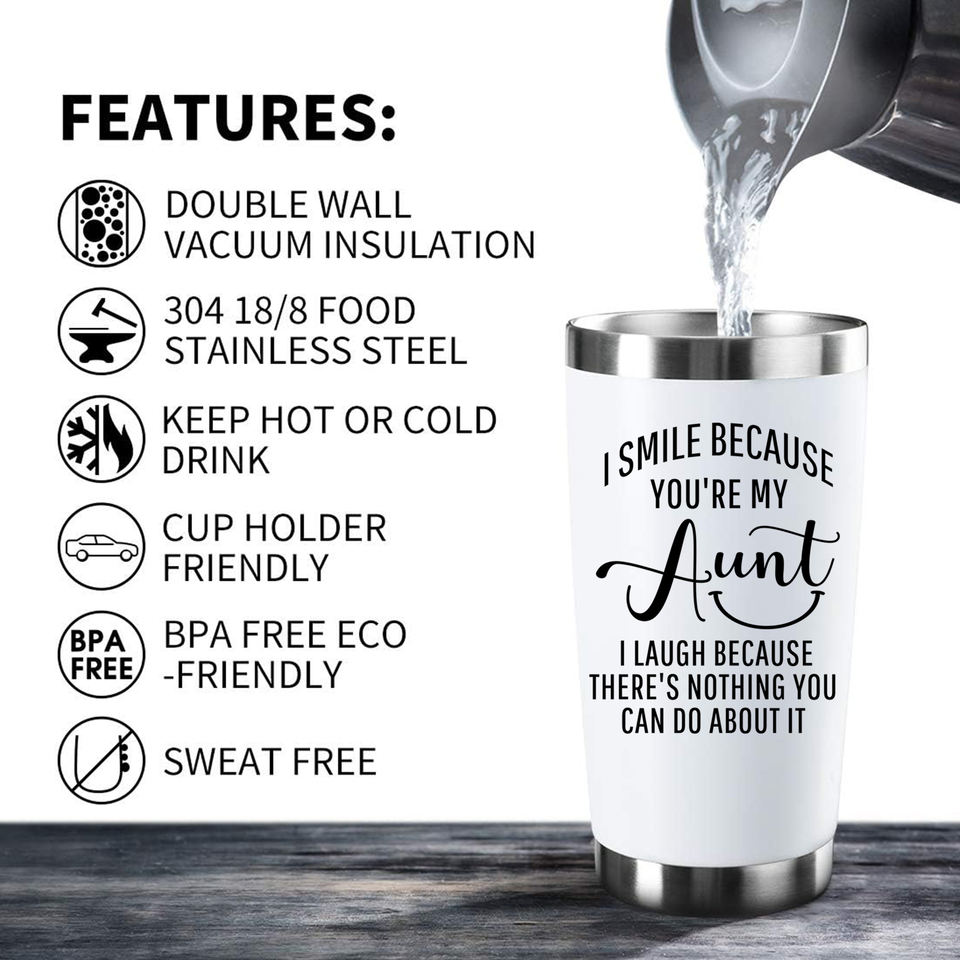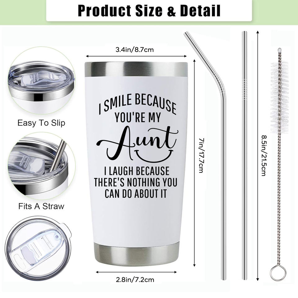 20ออนซ์ฉันยิ้มคุณเป็นป้าของฉันแก้วถ้วยกระติกน้ําร้อนที่สมบูรณ์แบบวันเกิดของขวัญวันแม่ป้าหลานชายหลานสาวแก้วกาแฟ