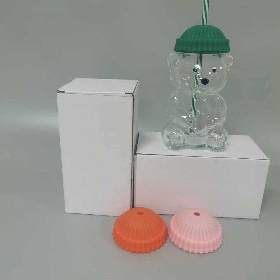 แก้วทรงตุ๊กตาหมี ขนาด 20 ออนซ์ ทำจากแก้วบอโรซิลิเกต พร้อมฝาและหลอด สำหรับกาแฟ น้ำผลไม้ ชา และนม เหมาะสำหรับร้านอาหาร