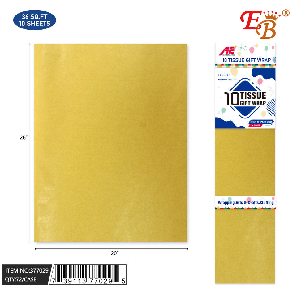 งานฝีมือกระดาษทิชชูสีเหลืองทอง20x26นิ้ว10-PC แพ็ค72ชิ้น /cs