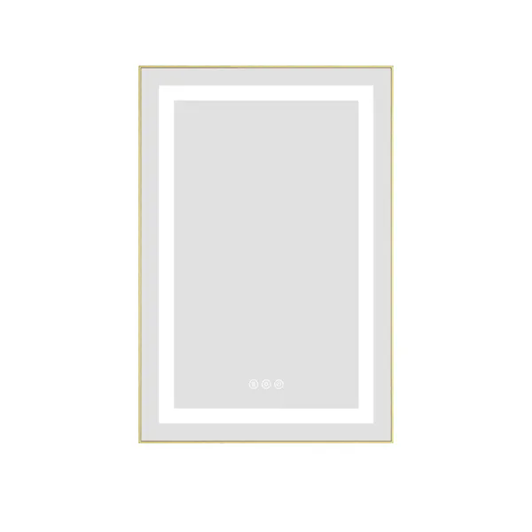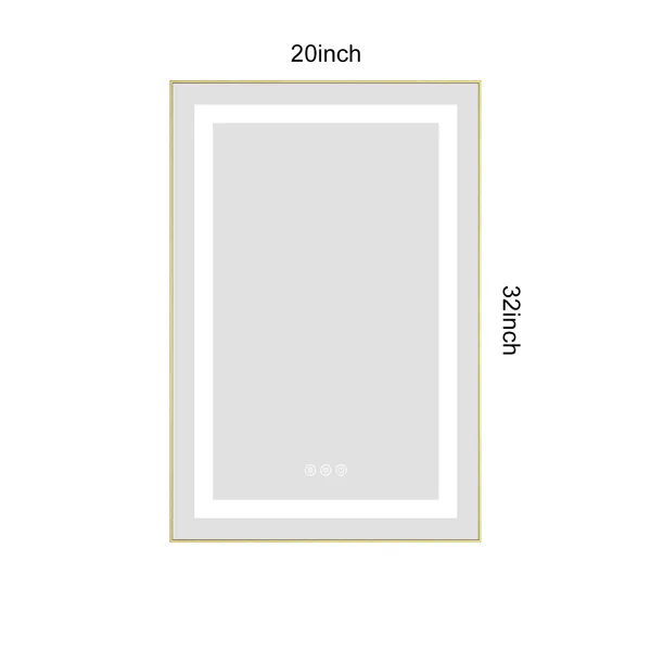 กระจกห้องน้ำ LED ขนาด 20x32 นิ้ว พร้อมไฟส่องสว่างด้านหน้าและด้านหลัง ดีไซน์ทันสมัย ติดผนัง กรอบอะลูมิเนียม ป้องกันฝ้า