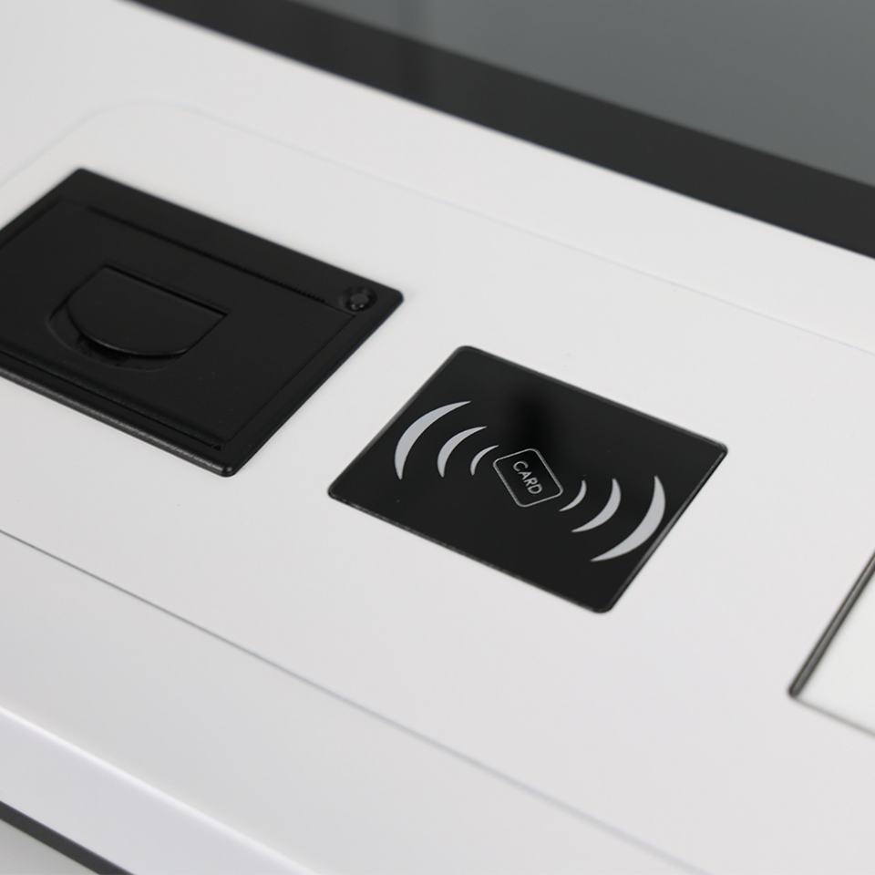 ตู้คีออสก์หน้าจอสัมผัสขนาด 21.5 นิ้ว สำหรับบริการตนเองแบบออลอินวัน รองรับการสั่งซื้อและชำระเงินแบบไร้เงินสด สำหรับร้านอาหารฟาสต์ฟู้ด