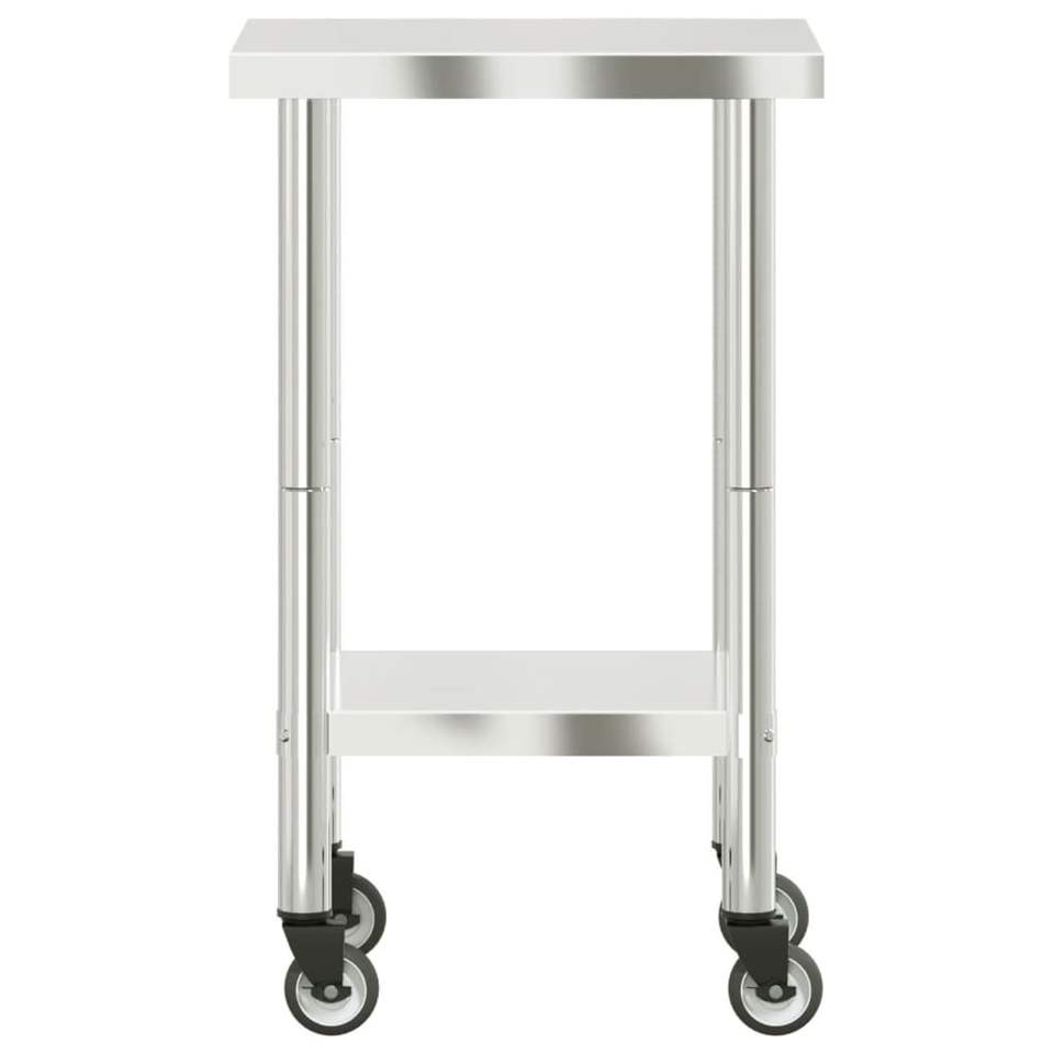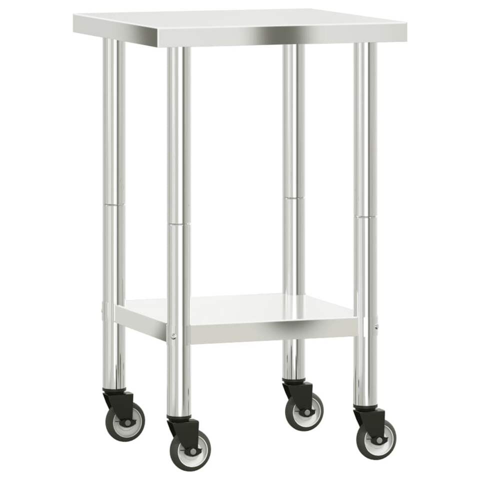 โต๊ะทำงานครัวสแตนเลสขนาด 21.7 นิ้ว x 21.7 นิ้ว x 33.5 นิ้ว พร้อมล้อเลื่อน ชุดครัวแบบเกาะและรถเข็น