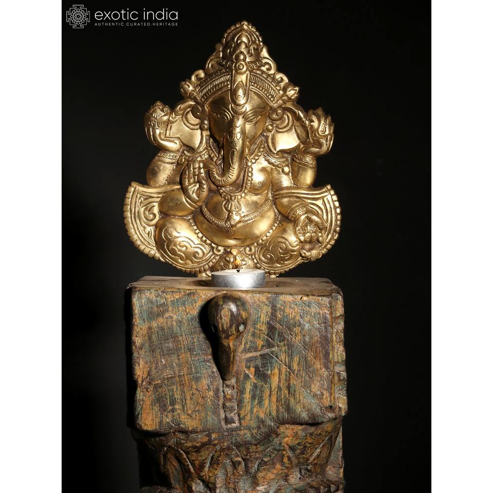 21 "รูปปั้นพระพิฆเนศบนแท่นเหล็กที่วางเทียนไม้พร้อมรูปปั้นอวยพรทำจากทองเหลืองของตกแต่งบ้านที่ไม่เหมือนใคร