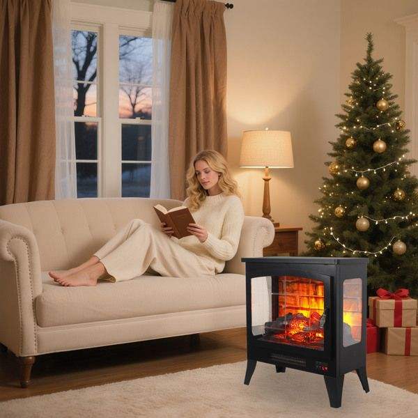 เตาผิงไฟฟ้าแบบตั้งพื้นขนาด 21 นิ้ว สามด้าน พร้อมเอฟเฟกต์เปลวไฟ 3 มิติ ควบคุมด้วยรีโมท ไม่ต้องรับสินค้าเอง