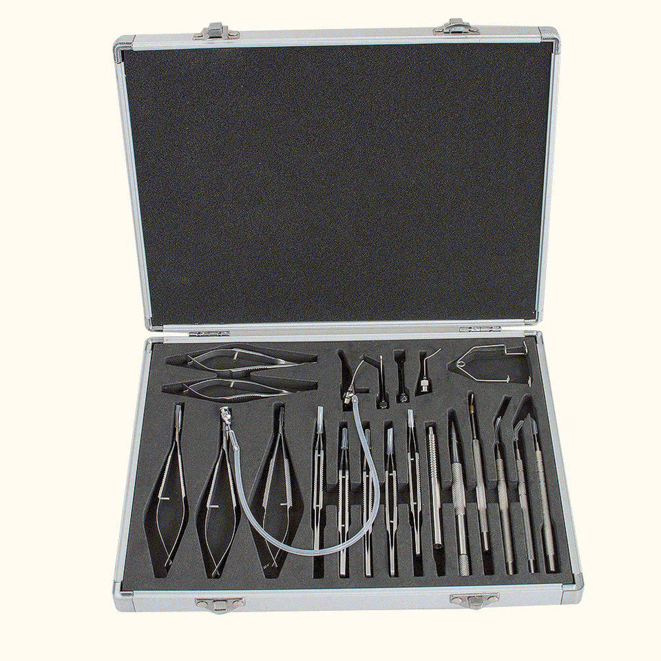 ชุดผ่าตัดต้อกระจก21ชิ้นเครื่องมือผ่าตัดขนาดเล็กที่ติดอยู่ถาดฆ่าเชื้อโรคตาที่ใช้ในการผ่าตัดตา