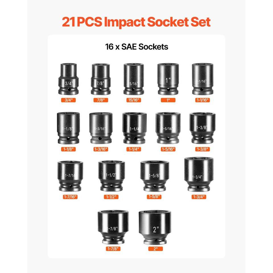 ชุดซ็อกเก็ตกระแทก21ชิ้นสำหรับยานพาหนะงานหนักที่3/4ถึง2นิ้วทนทานและใช้งานได้หลากหลาย