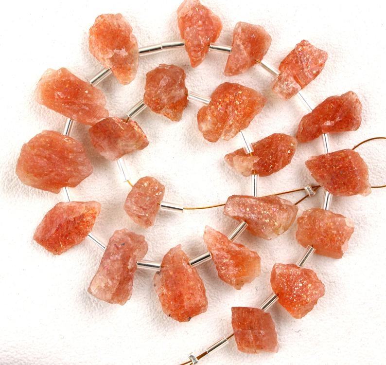 เครื่องประดับอัญมณีทำจากหินดวงอาทิตย์ธรรมชาติ21ชิ้นลูกปัดอัญมณีสีส้มรูปทรงไม่สม่ำเสมอขายส่ง