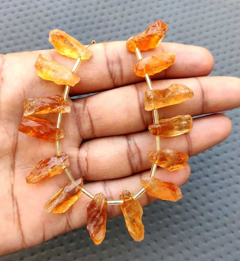 21 Pieces Natural Citrine Gemstone Uneven Shape Rough Untreated Side Drill November Birthstone Making Handmade Jewelry