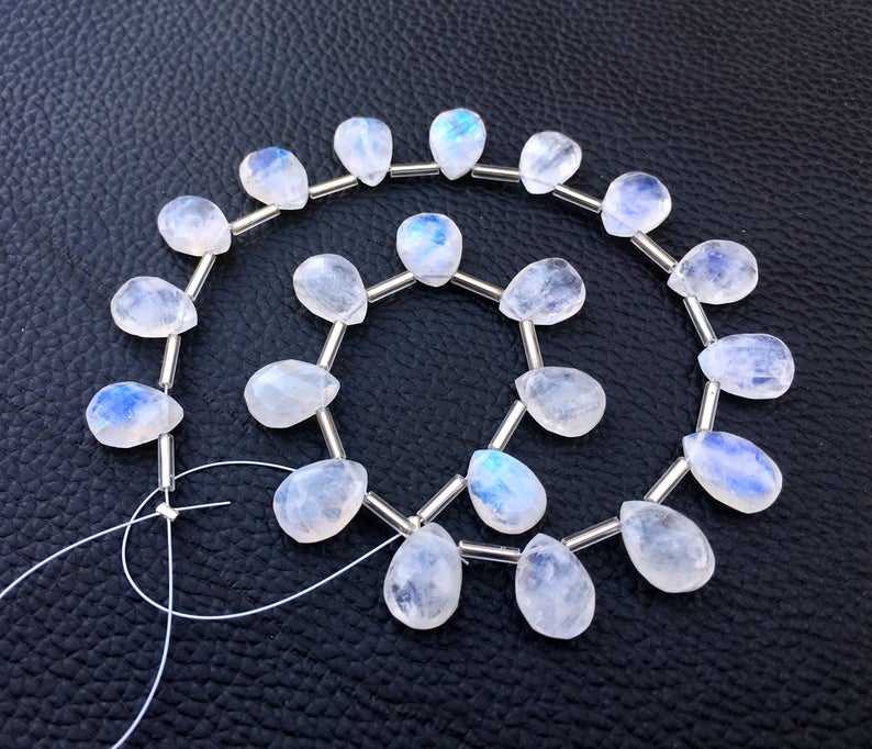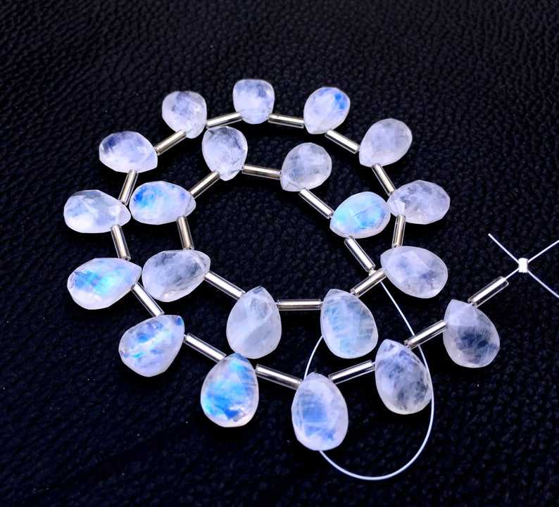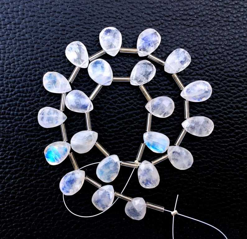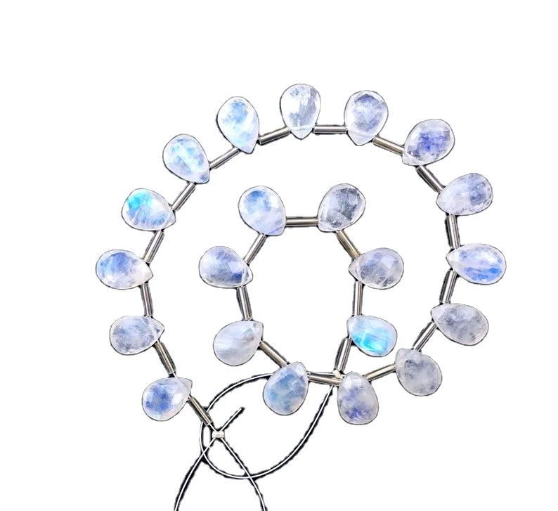 ลูกปัดพลอยบริโอเลตต์สีรุ้งธรรมชาติ21ชิ้นแบบเหลี่ยมเพชรพลอยสีฟ้าแวววาว