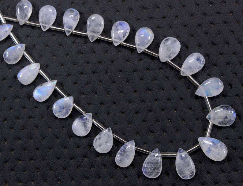 ลูกปัดหินมูนสโตนสีรุ้งสีขาวรูปลูกแพร์เรียบ21เม็ดสีฟ้าธรรมชาติสำหรับทำสร้อยข้อมือและสร้อยคอแบบทำมือ
