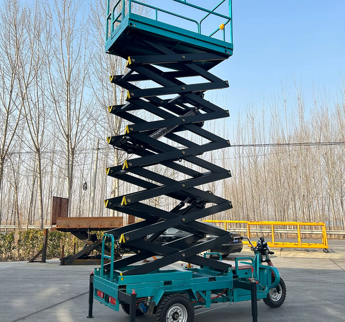 โต๊ะยกแบบกรรไกรขนาด 2100x800 มม. พร้อมมอเตอร์ไฟฟ้า รถสามล้อเคลื่อนที่ แพลตฟอร์มไฮดรอลิก อุปกรณ์ยกสำหรับฟาร์มและการเกษตร