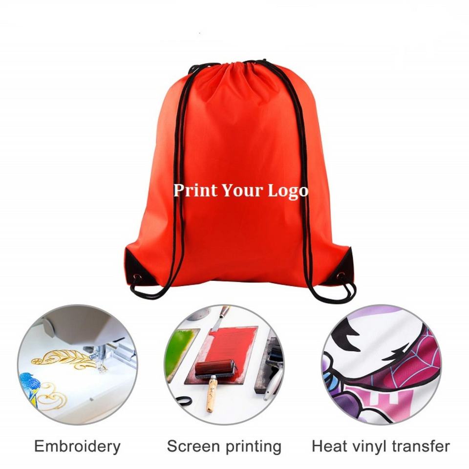 กระเป๋าเป้สะพายหลังแบบมีเชือกผูก โพลีเอสเตอร์ 210D สำหรับงานโปรโมชั่น พิมพ์โลโก้ตามสั่ง สีแดง พร้อมถุงกันฝุ่นแบบมีเชือกผูก