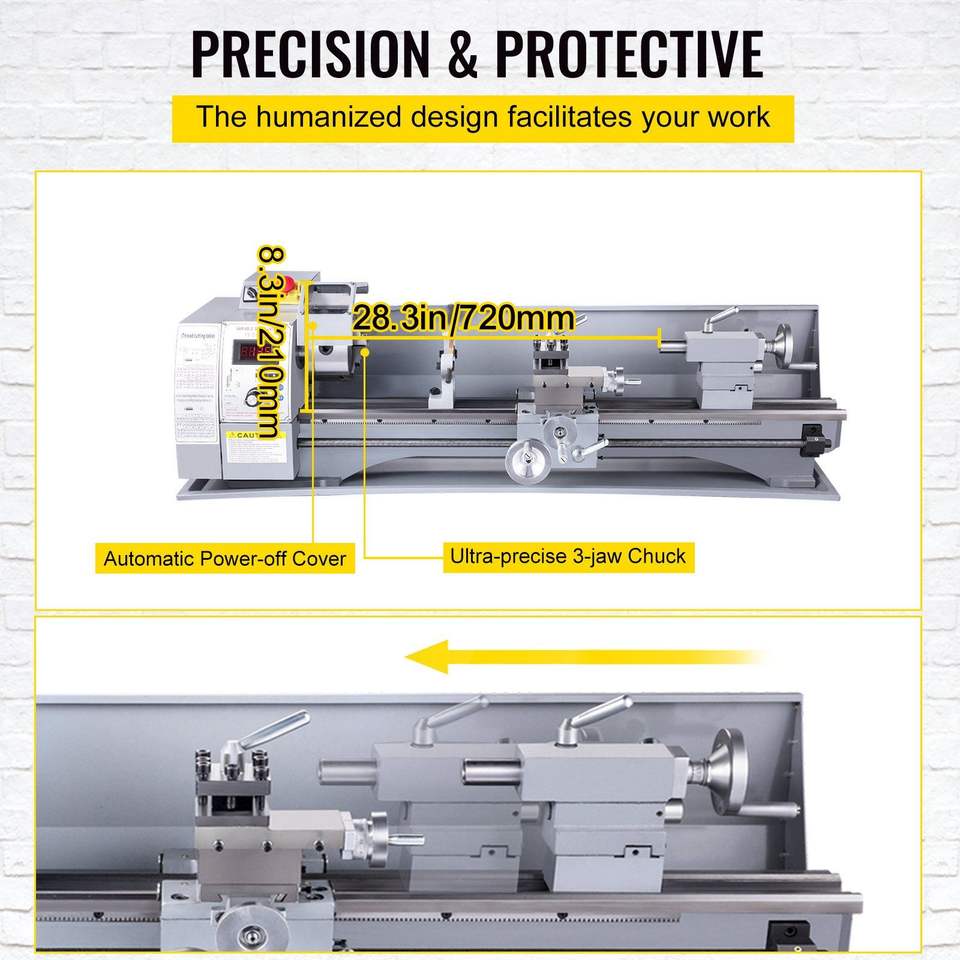 เครื่องกลึงโลหะขนาดเล็ก 210x720 มม. ความแม่นยำสูง ความเร็วแปรผัน 2500 รอบต่อนาที กำลังไฟ 750 วัตต์ เครื่องกลึงแบบแมนนวลสำหรับงานโลหะ ความเร็ว 2500 รอบต่อนาที ปรับเปลี่ยนได้