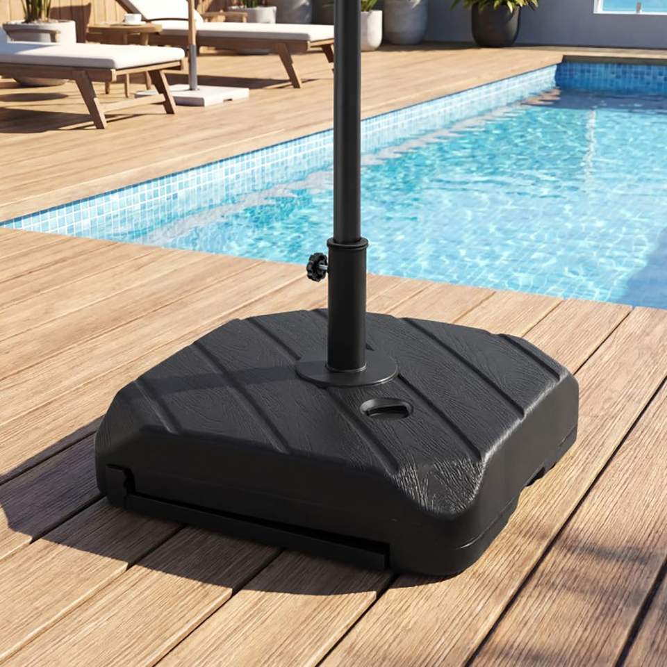 ฐานร่มสนามแบบเติมน้ำหนักได้ 211 ปอนด์ พร้อมล้อเลื่อนและแกนดึงแบบยืดหดได้ สะดวกสำหรับใช้งานกลางแจ้งสำหรับร่มกันแดด