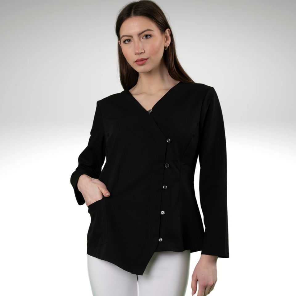 เสื้อเบลาส์และเสื้อสไตล์วิทยาลัยสุดเท่พร้อมจี้ปักหมุดสีดำเข้ากับทุกชุดของผู้หญิง