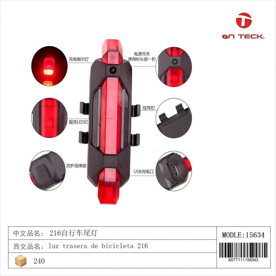 ไฟท้ายจักรยาน216 12ชิ้นโคมไฟนิรภัยแบบชาร์จไฟได้ไฟท้ายจักรยานแบบชาร์จไฟได้