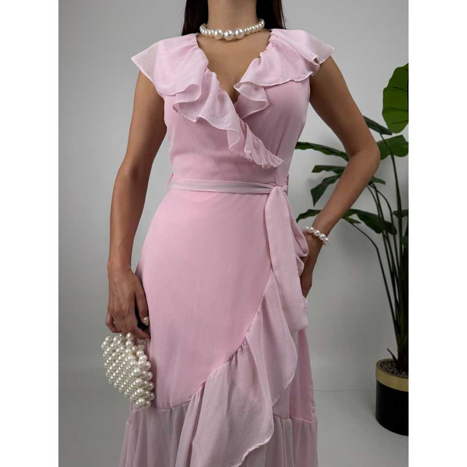 2168 ชุดเดรสผ้าชีฟองทรงเอไลน์พร้อมขอบเอวแบบธรรมชาติ