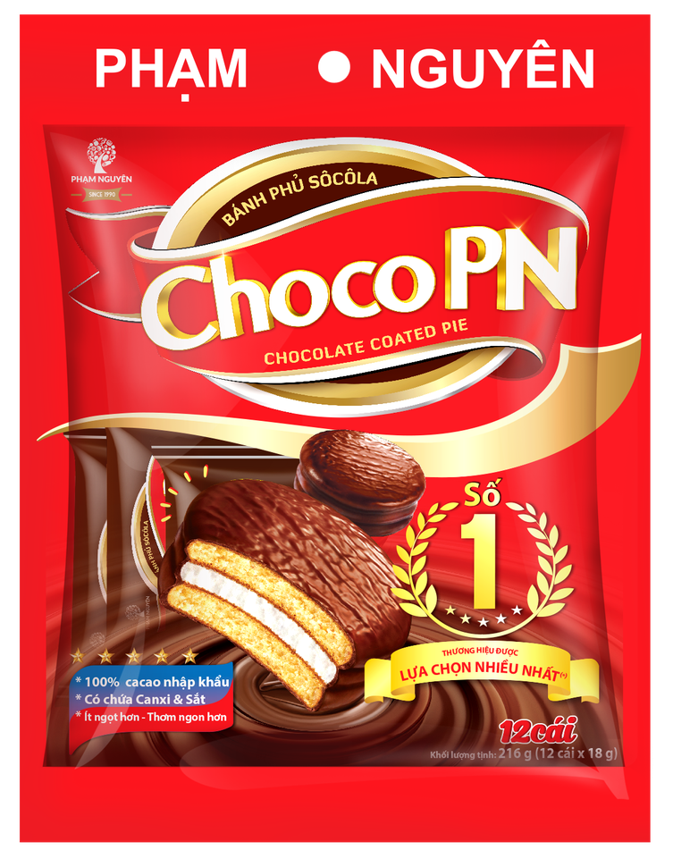 216g CHOCO PN Chocolate-Coated Marshmallow Filled Sweet Taste Less Sweet Pie Bag-Shaped Sugar Wafer Biscuits Vietnam 12-Month