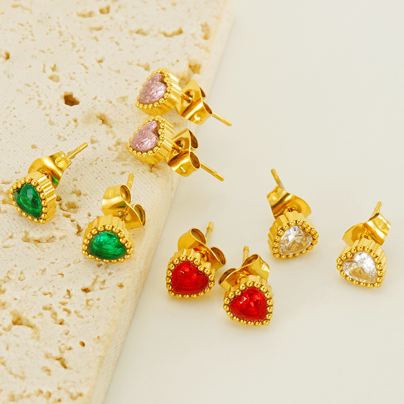 21High Quality 18k Gold Plated Style New Fashion Hypoallergenic Heart Shaped Zircone Stud Earrings Women Luxury