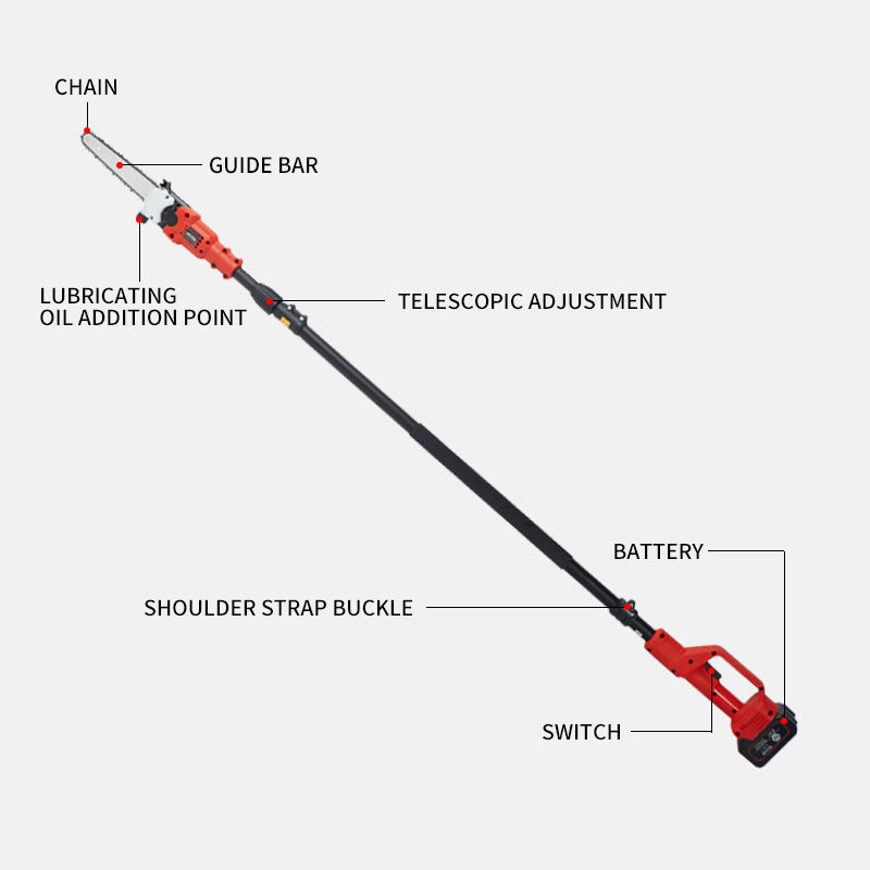เลื่อยเสาขับเคลื่อนลิเธียม21V มอเตอร์ไร้แปรงปั๊มอัตโนมัติตัดกิ่งสูงได้อย่างง่ายดาย