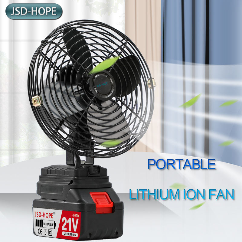 พัดลมไฟฟ้าแบตเตอรี่ลิเธียมขนาด21V พลังลมแรงและความเย็นสำหรับกิจกรรมภายนอกและอายุการใช้งาน