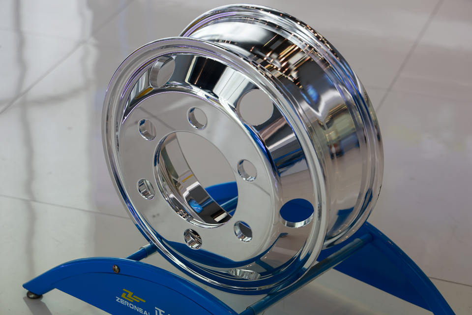 ล้อรถบรรทุกอลูมิเนียมสีดำ22.5X9ได้รับการรับรองจากโรงงานจีน5หลุมอากาศทรงสี่เหลี่ยมคางหมู00