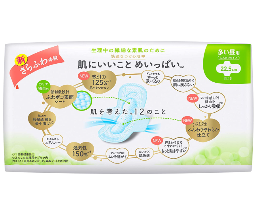22.5cm 20pcs Non-steamy Material Organic Japanese Sanitary Napkin Brand Kao Sanitary Napkin Soft Type for Day With Wings