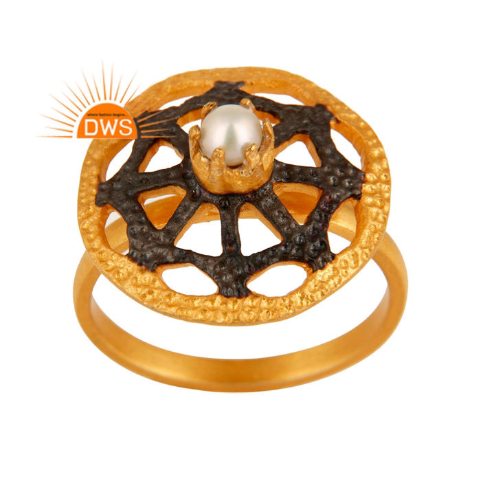 แหวนค็อกเทลเงินแท้ชุบทอง 22 กะรัต ประดับมุกอินเดีย แหวนอัญมณี ขายส่ง คอลเลคชั่นวินเทจ