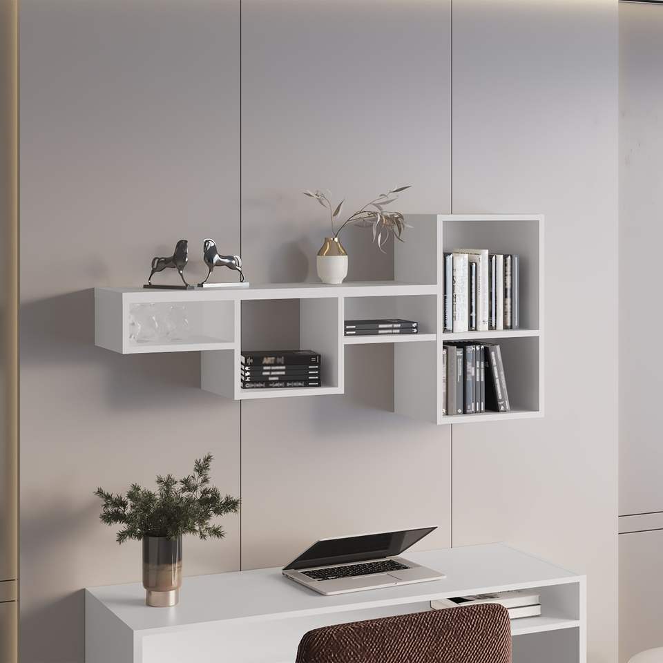 22\"H DB White Wall Shelves 7-Shelf Unit