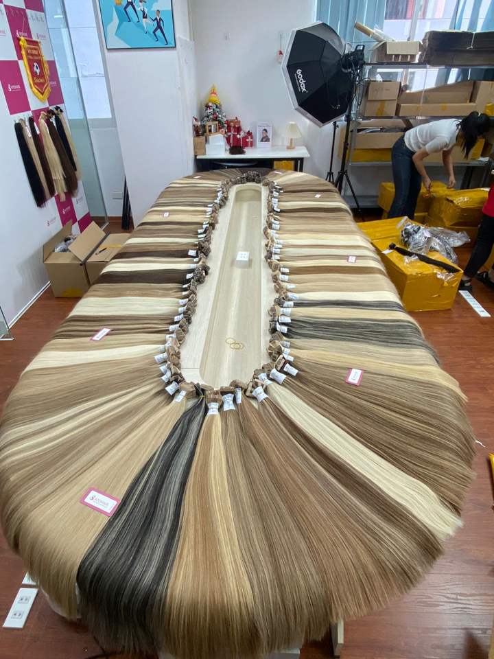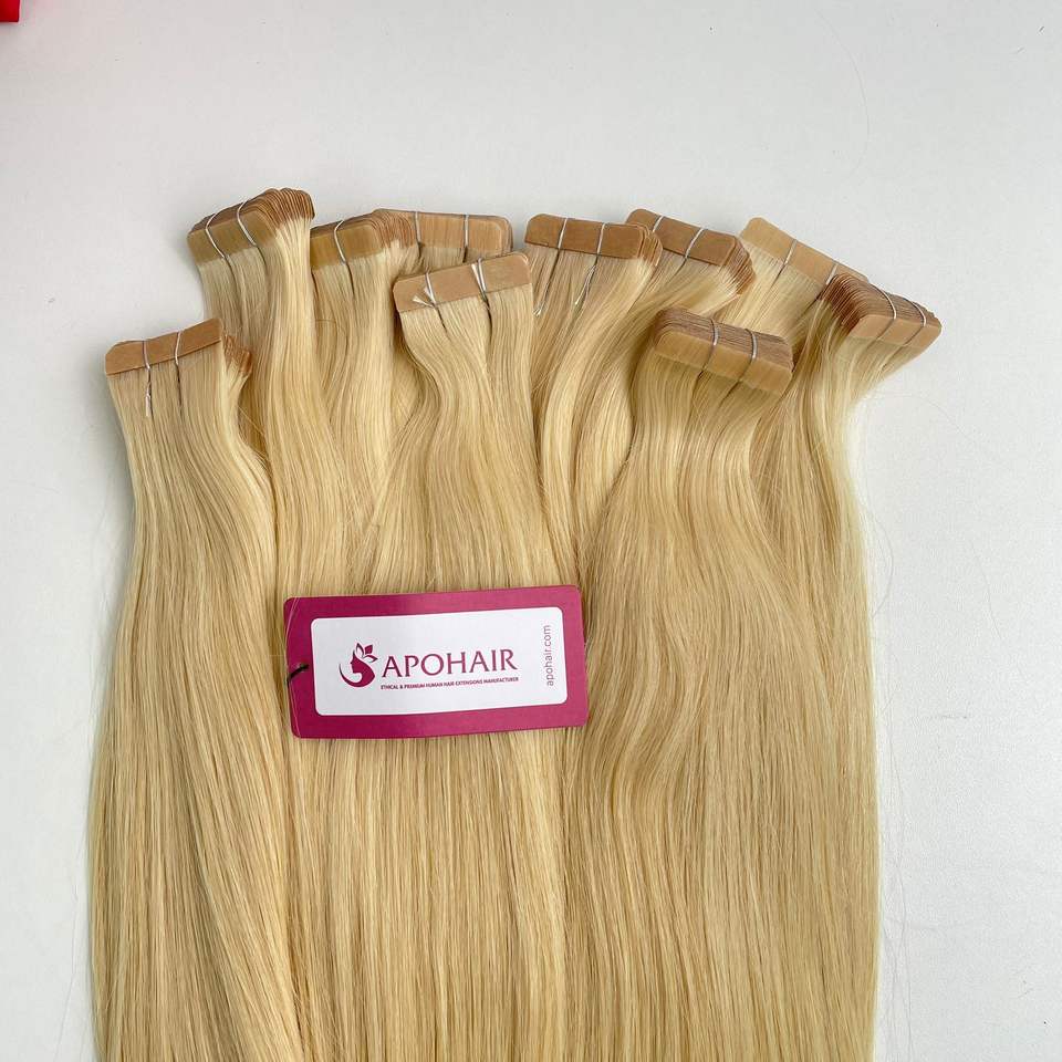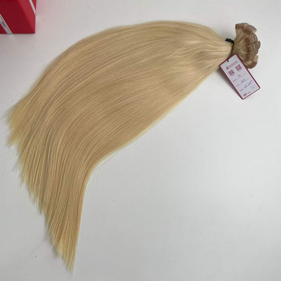 ผมต่อจากมนุษย์ผมลอนสีบลอนด์22นิ้วผมมนุษย์แบบเรมี่100% เครื่องตัดหนังกำพร้าเป็นเส้นคู่ชุด40ชิ้น