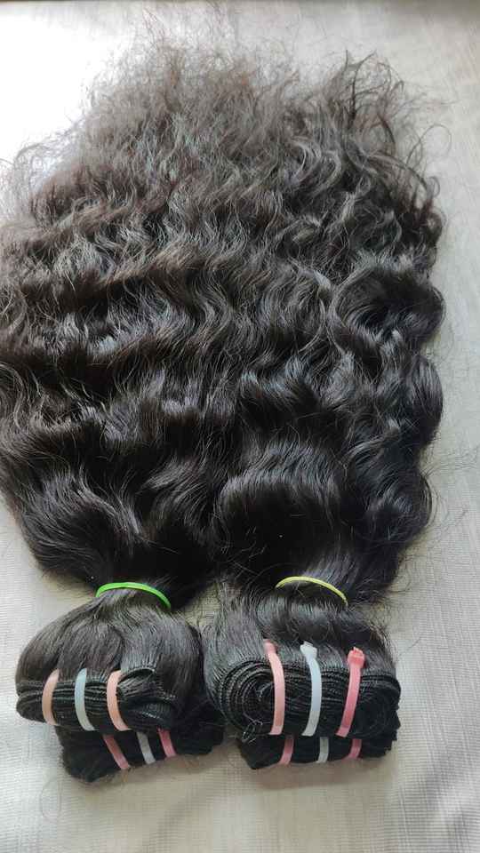 ผมแท้จากอินเดียแบบ Single Drawn ขนาด 22 นิ้ว น้ำหนัก 100 กรัม สีธรรมชาติ ลอนลึก ลอนหลวม ลอนน้ำ แบบ Flat Silk Weft Remy