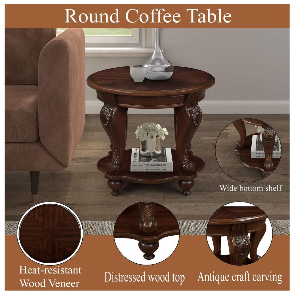 22 Retro Round Solid Wood Console Table Easy-to-Assemble Cherry Sofa Side Table with Shelf for Living Room Corner