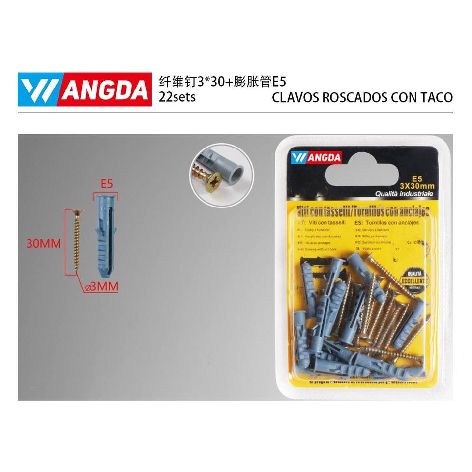 22 Sets of Carbon Steel Fiber Nail 3*30 Size with Expansion Tube E5 Concrete Masonry Type Smooth Shank Cupped Head for Anchoring