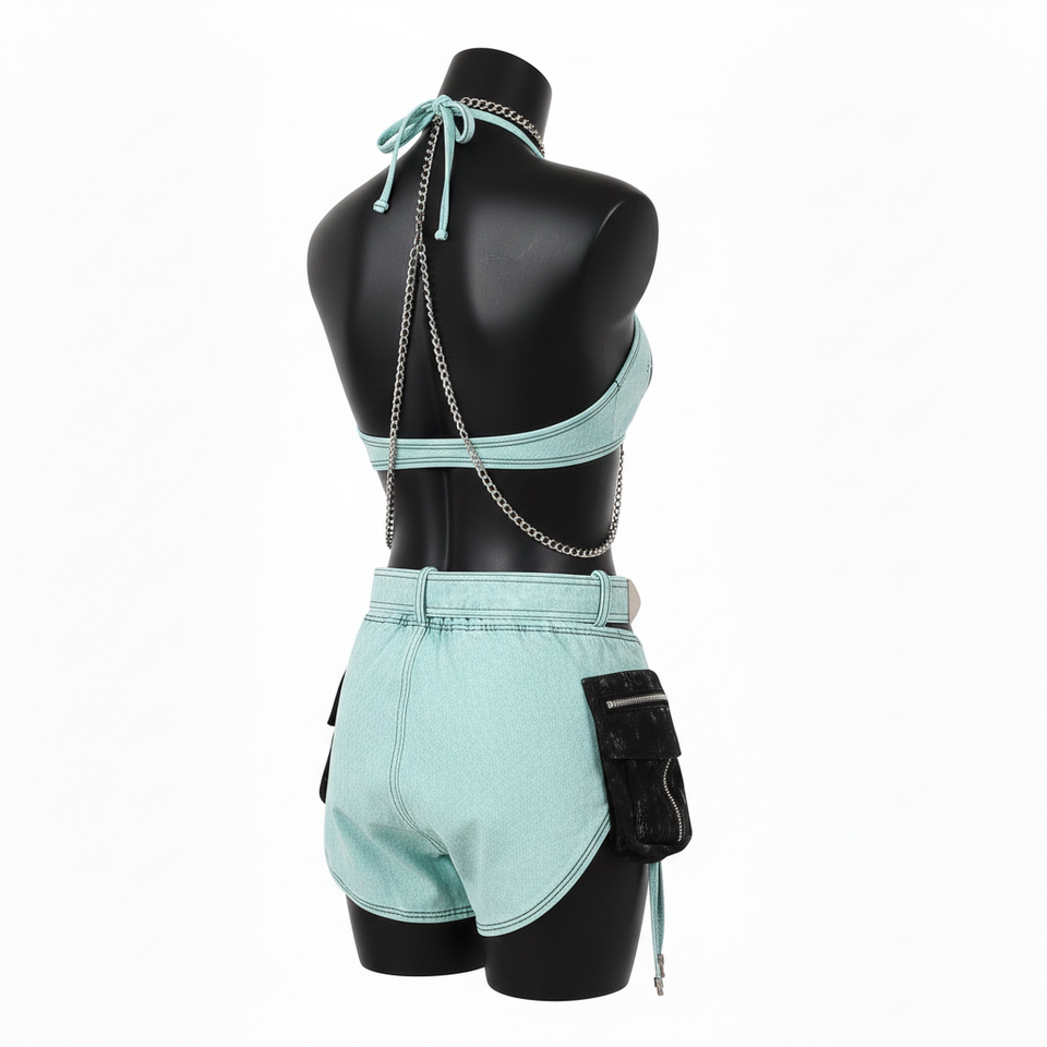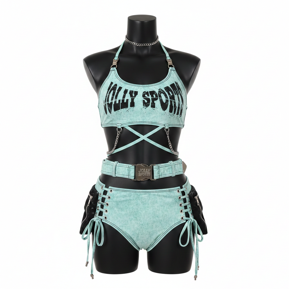 ชุดบิกินี่ผู้หญิงผ้าคอตตอนผสมพรีเมียม 220 GSM สีเขียวมิ้นท์ แต่งลูกไม้ผูกเชือก พิมพ์โลโก้ตามสั่ง