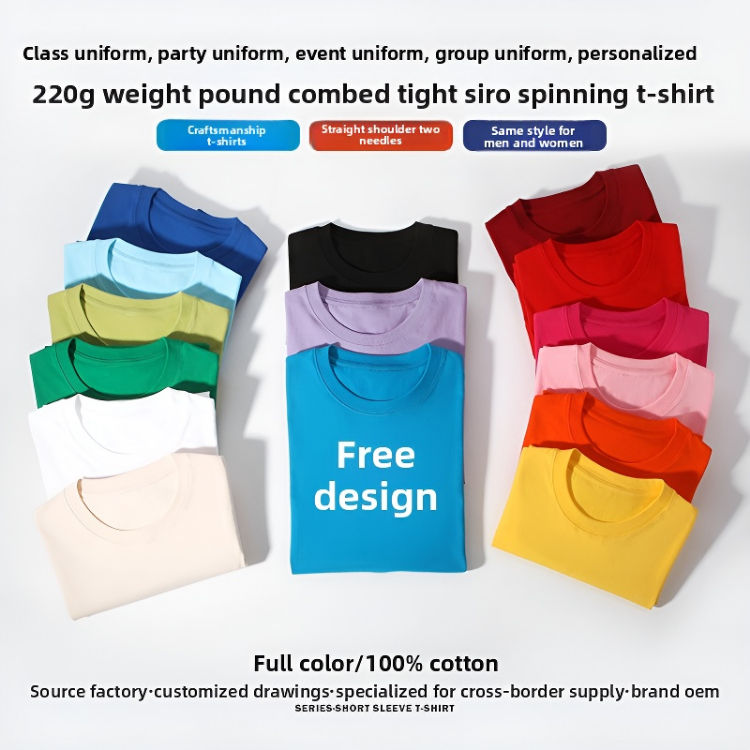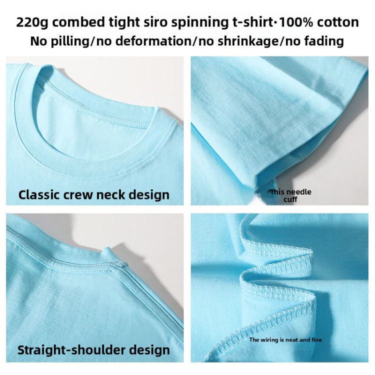 เสื้อยืดคอกลมผ้าฝ้ายถักน้ำหนัก 220 กรัม ทรงปกติสำหรับผู้ชาย ขายส่ง เสื้อเปล่าเนื้อหนา แห้งเร็ว ระบายอากาศได้ดี พร้อมสกรีนลาย